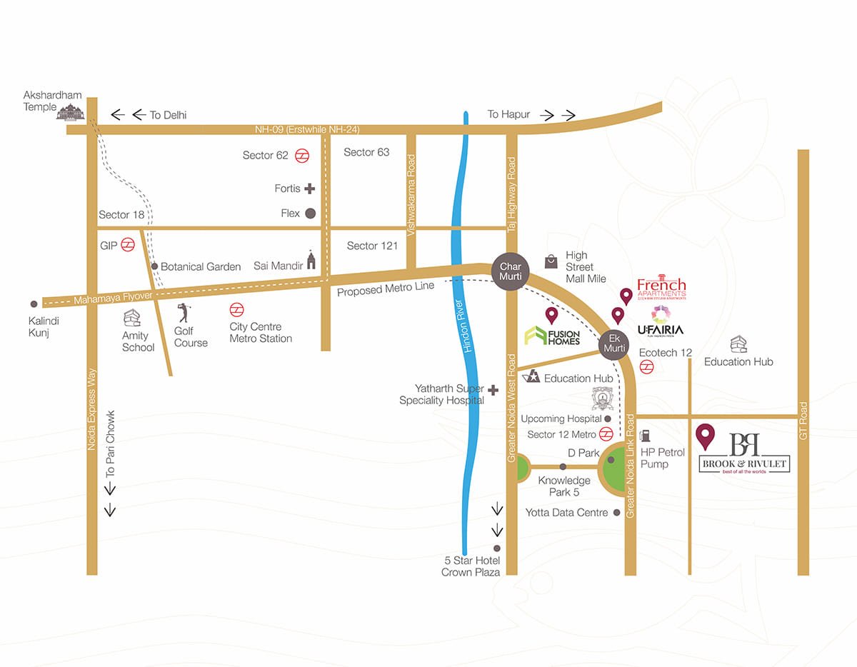 Another major highlight of Fusion The Brook & Rivulet is its strategic location. It offers excellent connectivity to Delhi, Ghaziabad, and other key destinations across the National Capital Region. Residents enjoy close proximity to leading educational institutions, government offices, renowned hospitals, shopping centers, and entertainment hubs, ensuring convenience in every aspect of daily life.
